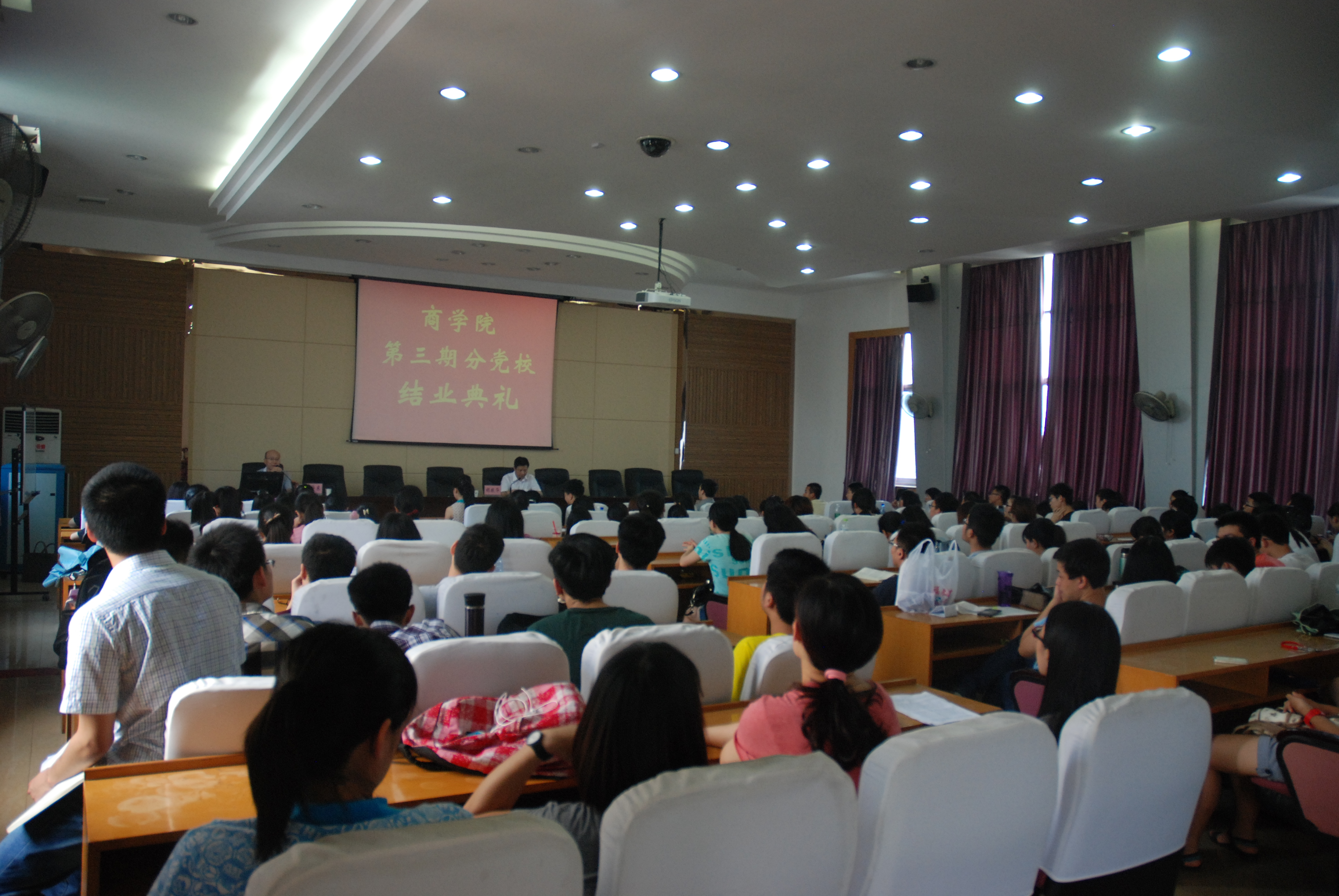 2014年6月13日下午3:00,金年会诚信信誉至上分党校第三期入党积极分子培训高级班结业典礼在管理楼508教室隆重举行。金年会诚信信誉至上党委书记、分党校校长胡振华教授,党委副书记、分党校副校长李华东老师,研工办主任张艳玲老师,党委办公室主任田红萍老师,团委书记丁时杰老师、学工办和党办老师及高级班学员共170余人参加结业典礼。典礼由院党委副书记李华东老师主持。