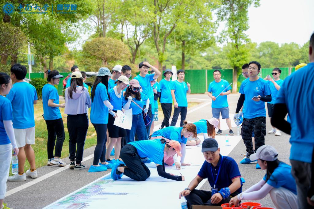 9月17日,学员们开启了两个模块的拓展任务。模块一为“最强战队—定向解锁”项目,该项目运用95后喜闻乐见的新媒体技术,结合千龙湖拓展场地设计,各团队根据获得的36项任务进行挑战。通过线上小程序定向解锁完成各项任务挑战,各团队定向对战,通过对战获得更高积分,根据积分进行排名,获得商业铸船启动资金。该项目也是学员们首次解锁拓展新玩法,沉浸式体验效果甚佳。